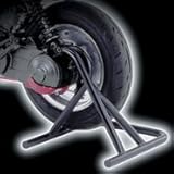 レース用スクーターにオススメのレーシングスタンド。車種専用のステーを付属しています。メンテナンス時にも最適です。 適合車種:ライブDIO系 レース用スクーターにオススメの レーシングスタンド